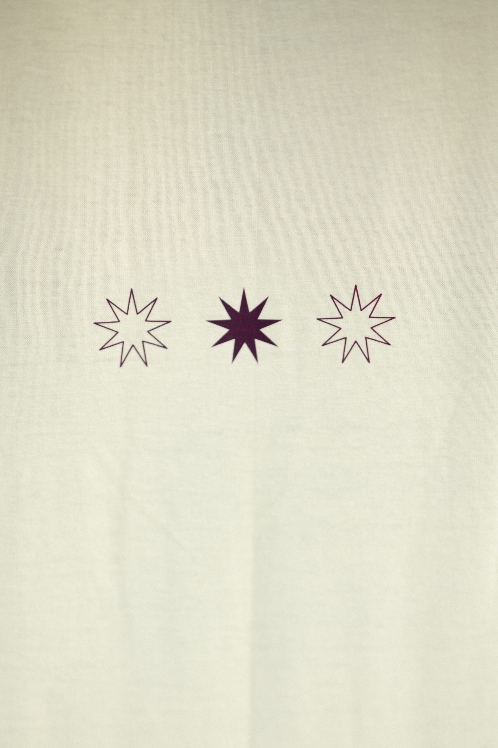 Colores: doubel cream de tejido principal en el cuello y hombros caídos. logo frontal en color vino oscuro.