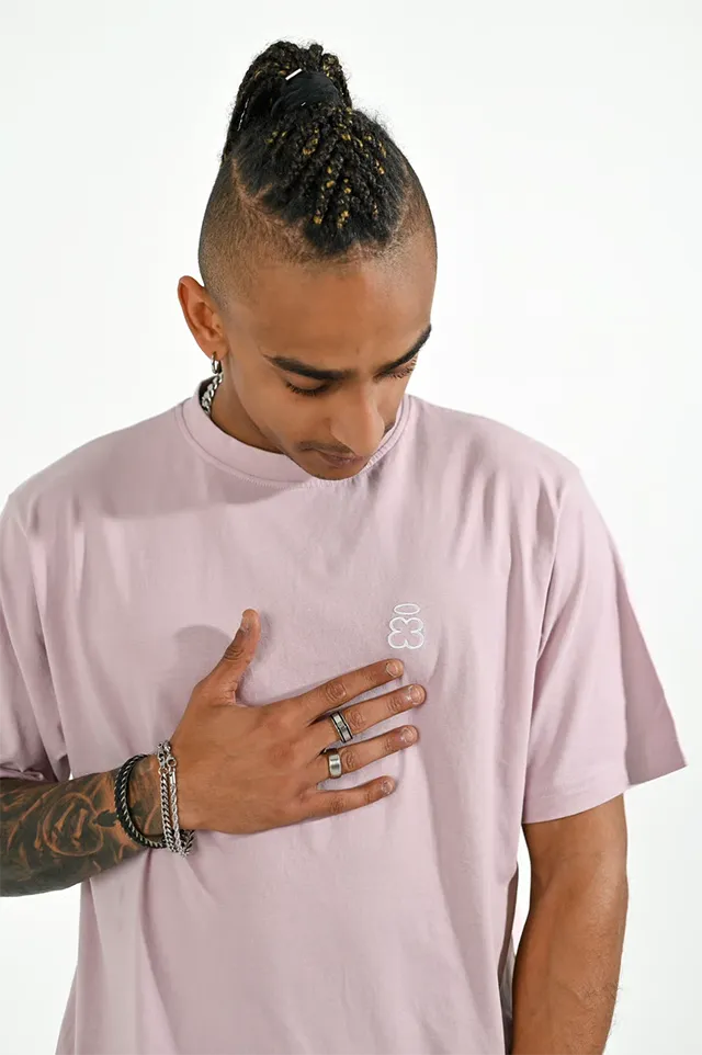 Tejido: cuello en canalé 1×1 con costura. simple, rosa palo oscuro interior de tejido principal en el cuello. puntada doble ancha en mangas y bajo, punto de jersey sencillo, 100% algodón orgánico hilado y peinado, 210 gsm, camiseta oversize corte boxy, cuello en canalé 1×1 con costura simple.