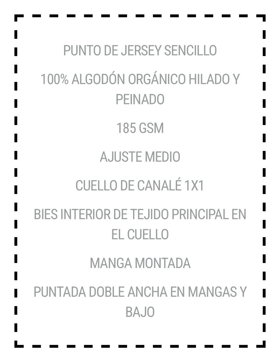 Material: 100% algodón orgánico hilado y peinado. 185 GSM.